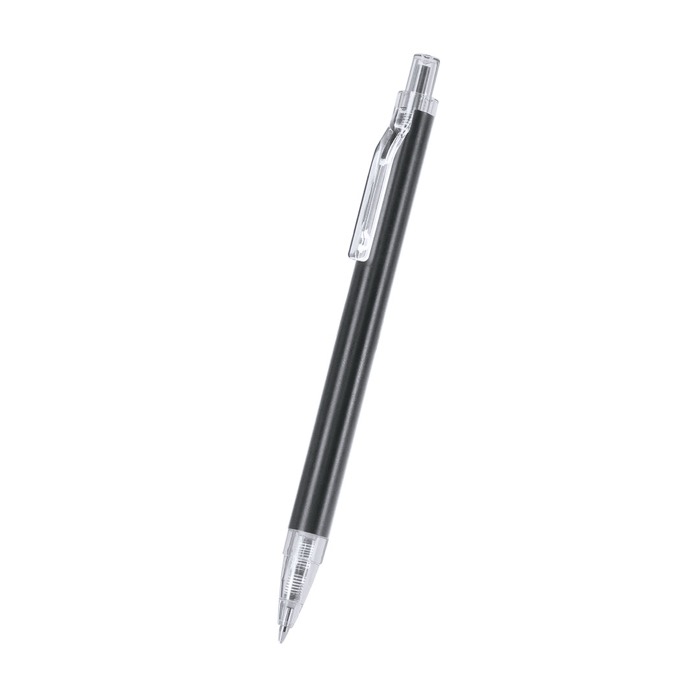 Bolígrafo con cuerpo de aluminio reciclado, pensado para el uso diario en oficina y eventos. Incorpora clip para llevarlo en libreta o bolsillo y sistema de pulsador para una activación rápida. La punta con acabado transparente aporta un detalle visual limpio y permite ver el encaje del recambio. Incluye carga jumbo y escritura en tinta azul, adecuada para notas continuas y firmar documentos con trazos constantes. Integra distintivo de aluminio reciclado para reforzar el mensaje corporativo en acciones de marca.
