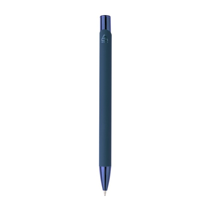 Bolígrafo pulsador de aluminio reciclado y goma de tinta azul