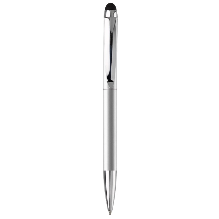 Bolígrafo giratorio de metal con stylus en la parte superior