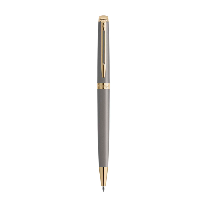 Bolígrafo de cuerpo y capuchón lacados con acabado metalizado, pensado para una escritura diaria cuidada y constante. El diseño incorpora ribete dorado claro y clip doble ramificado con el sello Waterman, con un aspecto neutro y atemporal que encaja en entornos corporativos. La punta con tinta de secado rápido ofrece un trazo fluido y limpio en color azul. Fabricado en Francia y presentado en caja de regalo de la marca, incluye garantía internacional de dos años. Recomendado para regalos de empresa, eventos y acciones de fidelización con imagen premium.