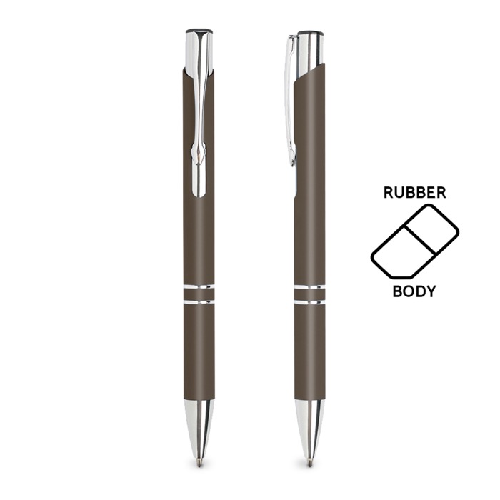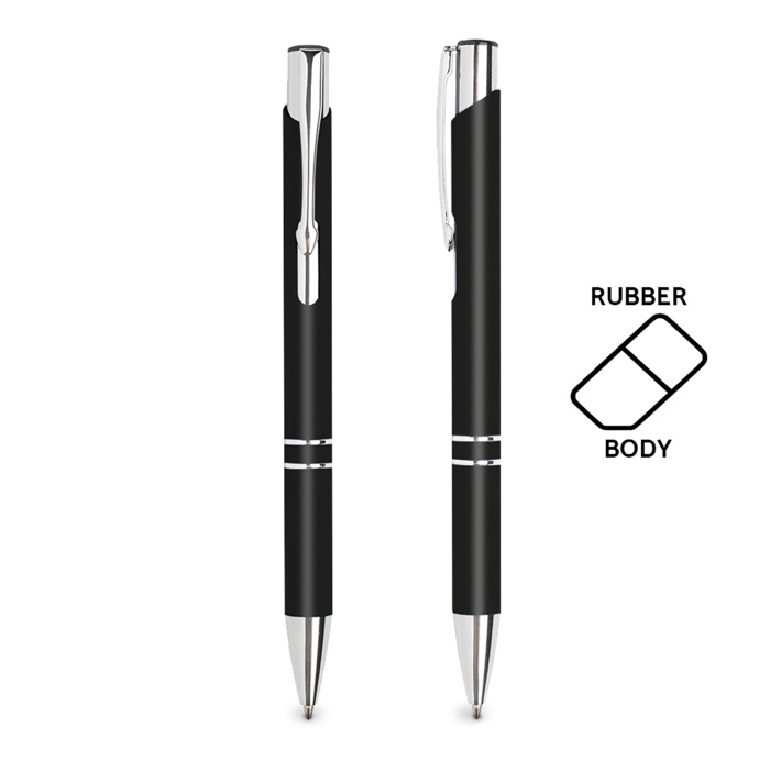 Bolígrafo de aluminio barato con cuerpo de goma y tinta negra Glober