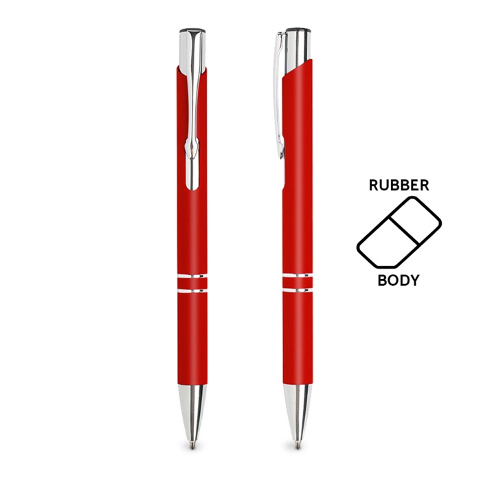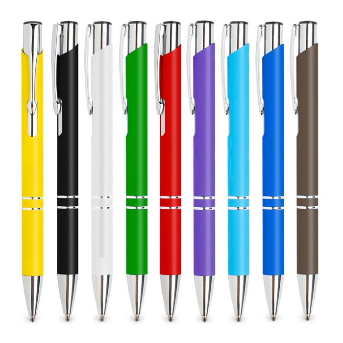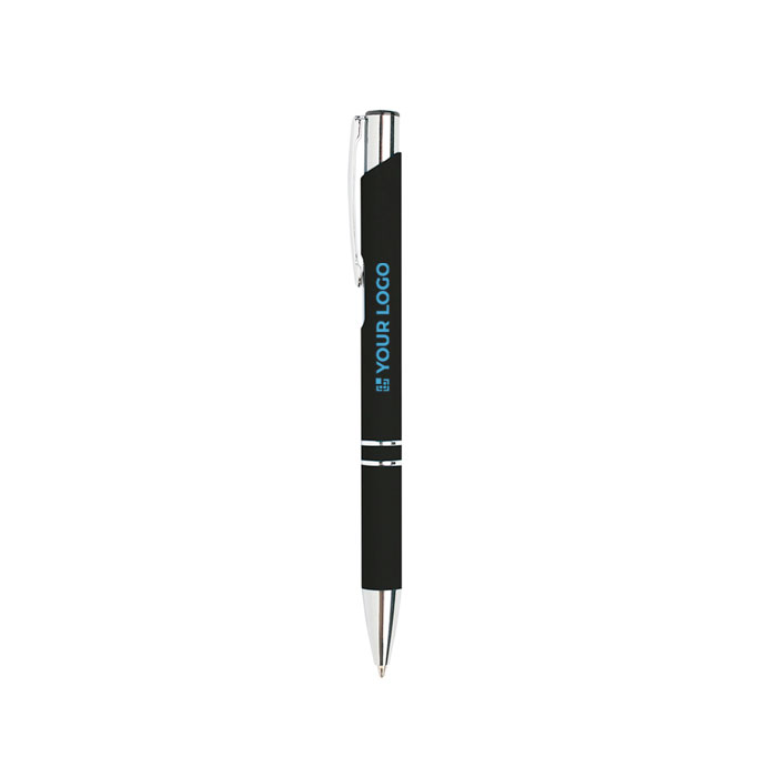 ¡Incorpora uno de nuestros best-sellers a tu merchandising promocional! Este bolígrafo está hecho en resistente aluminio y cuenta con acabado de goma, lo cual lo hace antideslizante y permite un agarre más suave y cómodo para la mano. Cuenta con una considerable variedad de colores a elegir y es apto tanto para imprimir a color el logo como para grabarlo a láser, en un lado o de manera circular. Aunque es una herramienta de escritura destacada, su precio es barato. La tinta es negra. Podrás elegir un envío más rápido ya que está habilitada la opción en caso de necesitar tu pedido en pocos días.