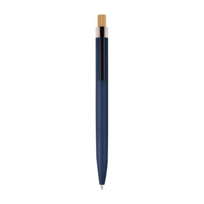 Bolígrafo de aluminio reciclado con pulsador de bambú tinta azul
