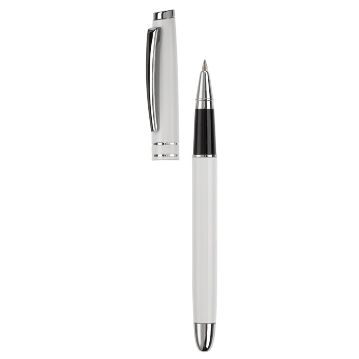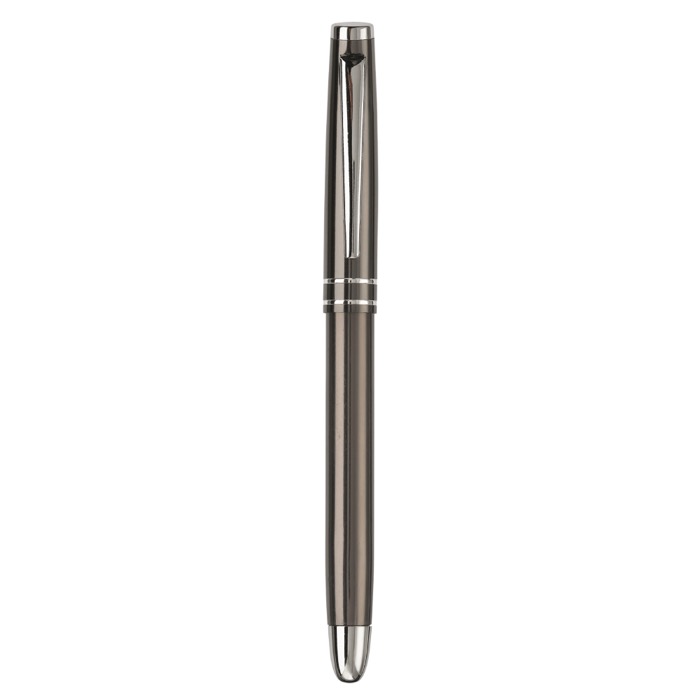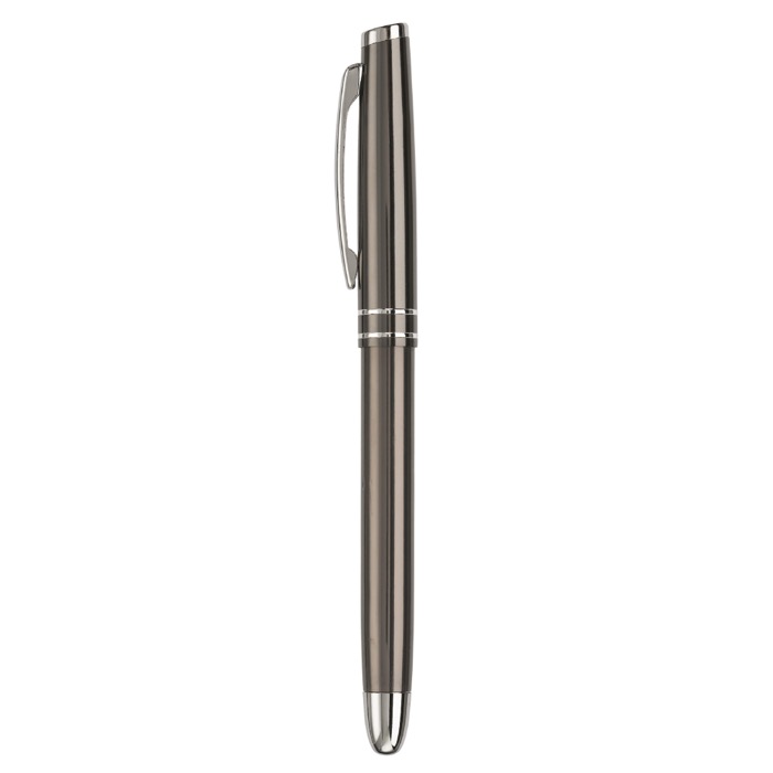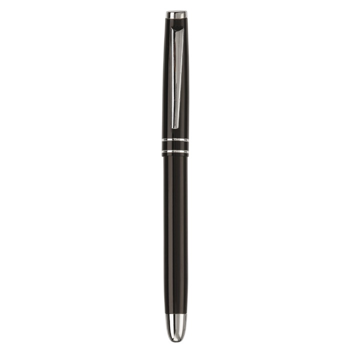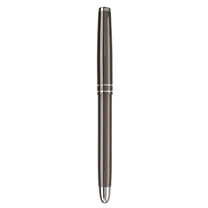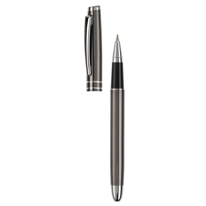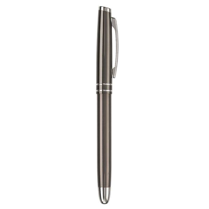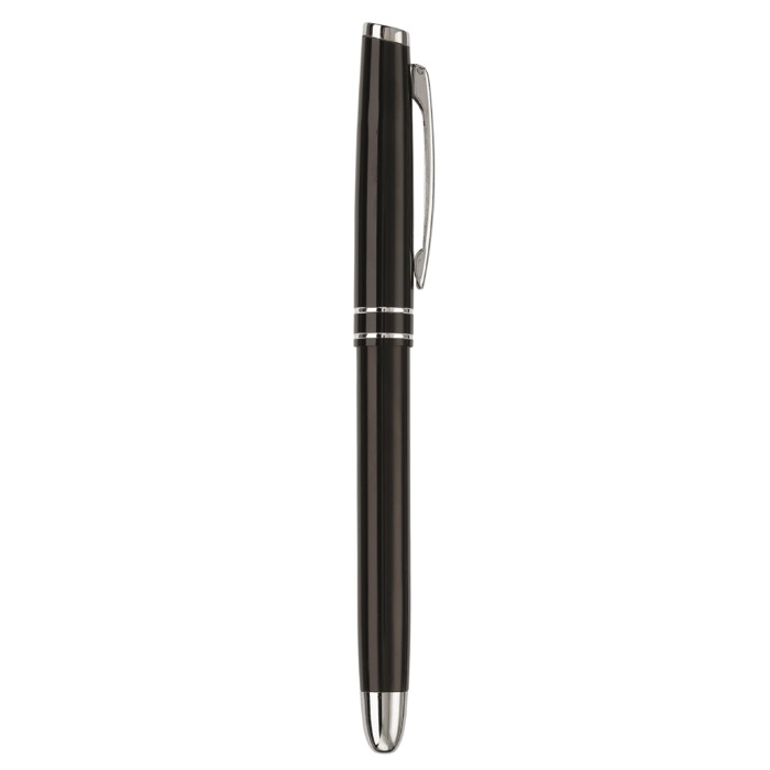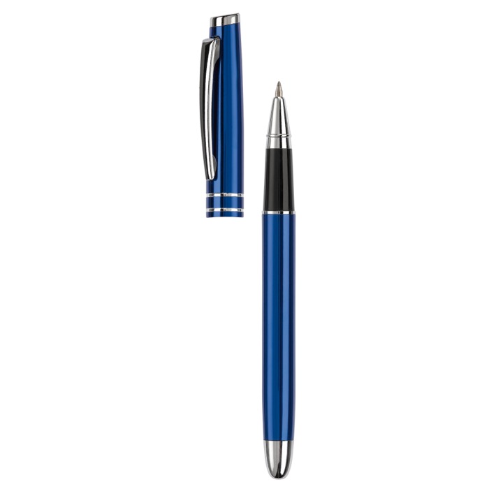 Bolígrafo roller de aluminio con capuchón a juego y tinta azul