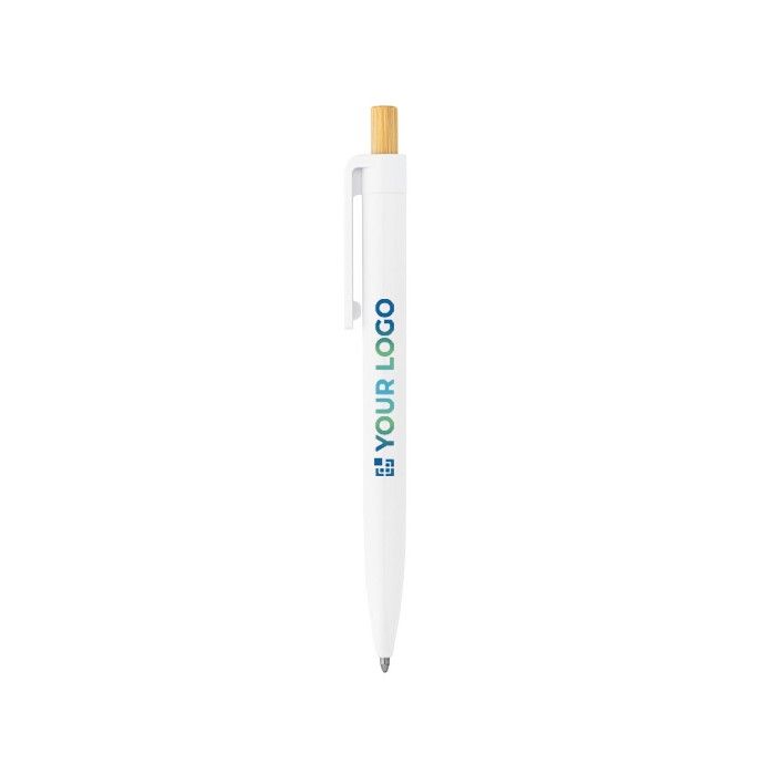 Presenta un bolígrafo de plástico reciclado con pulsador de bambú y tinta azul, una opción que equilibra sencillez, atractivo y sostenibilidad. Fabricado con ABS reciclado al 100%, este bolígrafo destaca por su compromiso con el medio ambiente. Al personalizarlo con tu logotipo, refuerzas la imagen de tu empresa como una entidad comprometida con la calidad. Es un obsequio práctico para campañas de marketing o kits de bienvenida, asegurando que tu marca sea recordada y valorada por su ética.