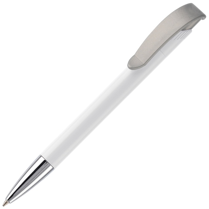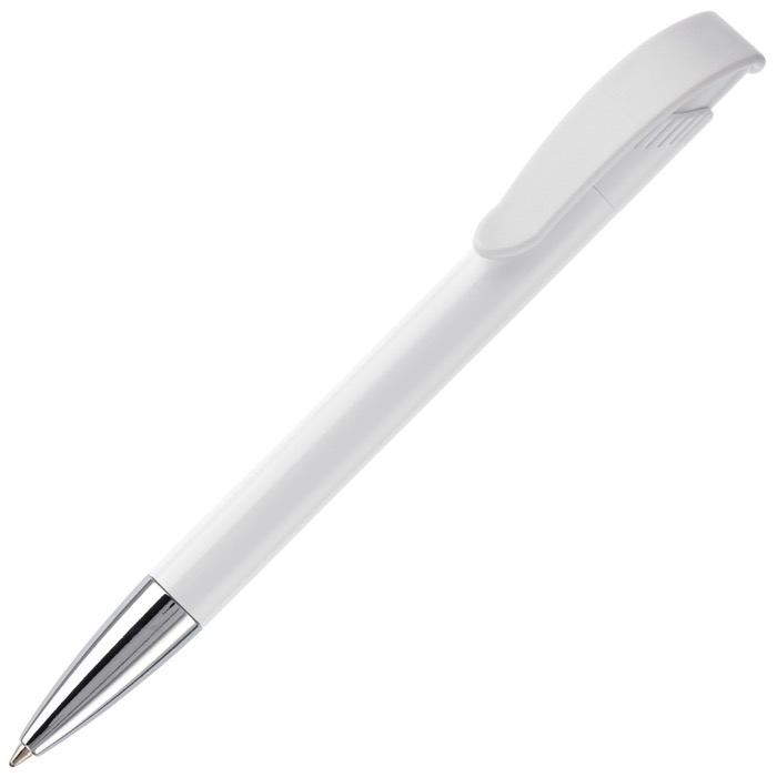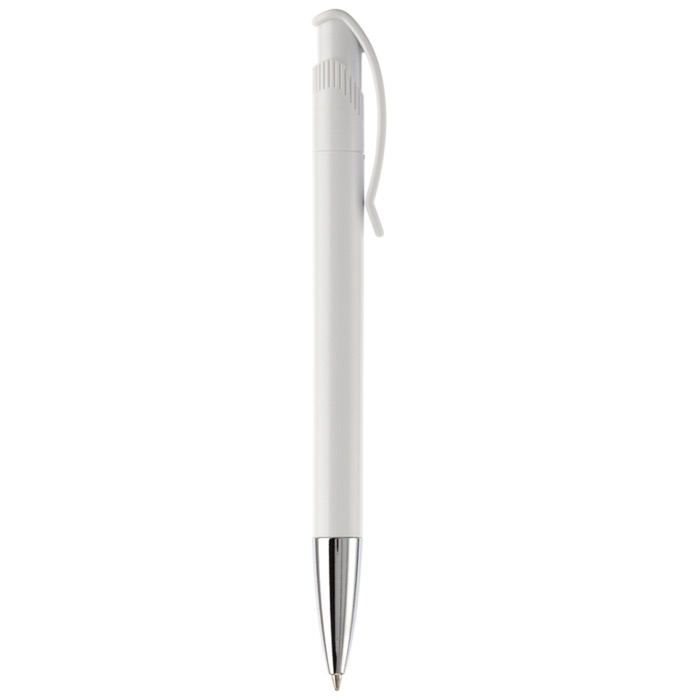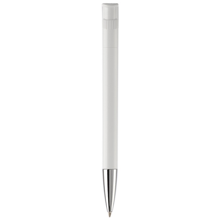 Un bolígrafo de plástico en color blanco con detalles en el pulsador te ofrece un estilo sofisticado para tu propaganda. Disponible en colores sólidos, este bolígrafo destaca por su clip arqueado y punta de metal, ofreciendo un obsequio elegante y duradero. Su recarga Jumbo, fabricada en Alemania, garantiza una escritura extensa y sin interrupciones, valorada por tus clientes y colaboradores. Este bolígrafo se convierte en una herramienta diaria que mantiene tu marca visible en el entorno profesional. Refuerza tu imagen con un detalle que comunica calidad en cada uso.