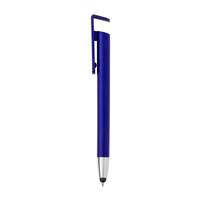 Bolígrafo metalizado táctil con soporte para móvil tinta azul