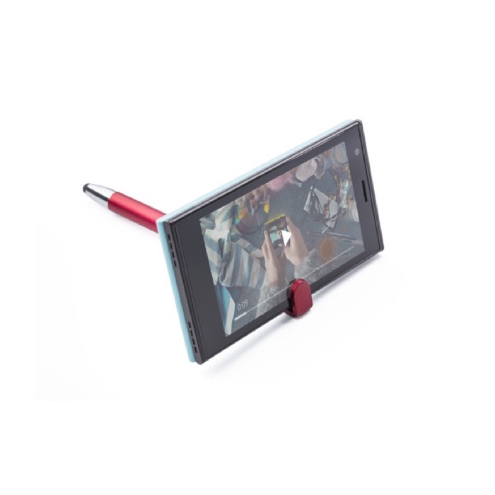 - Bolígrafo de ABS con puntero táctil y soporte para móvil