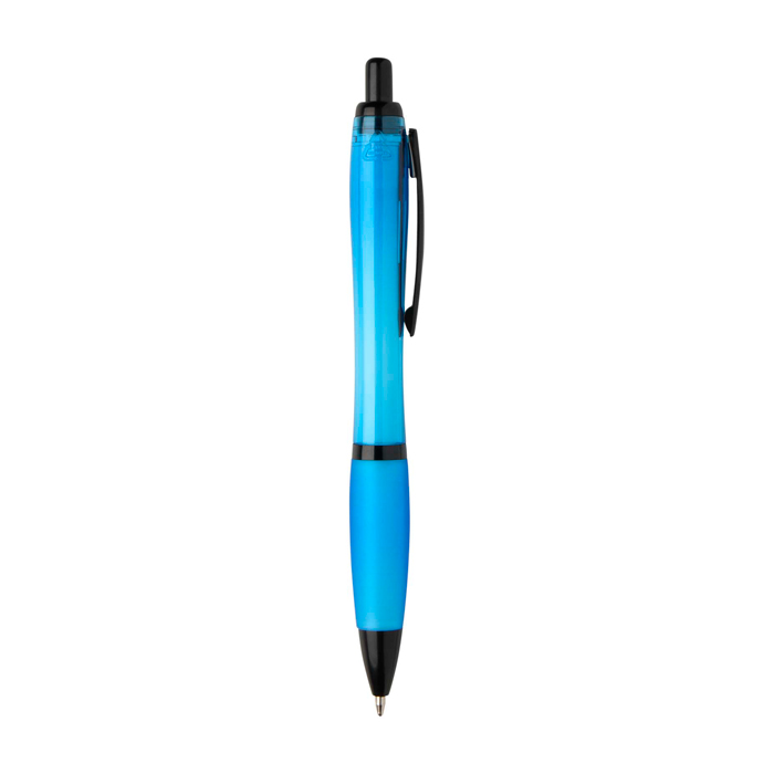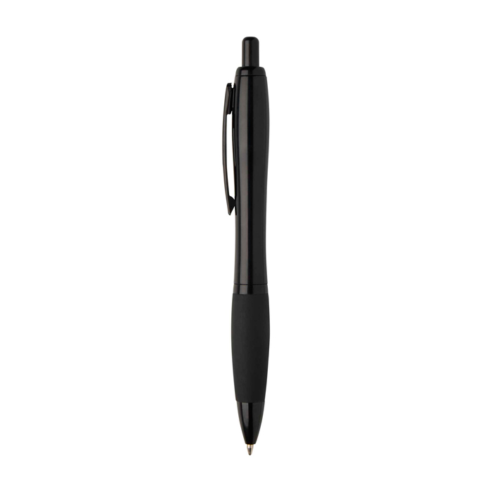 Bolígrafo negro fabricado en plástico reciclado con certificado RCS (Recycled Claim Standard), ideal para empresas comprometidas con la sostenibilidad. Su diseño curvilíneo y detalles a juego no solo aportan estilo, sino que también mejoran la ergonomía. El mecanismo de presión rápido facilita su uso, mientras que el agarre suave asegura una escritura cómoda y precisa. Con tinta negra y una longitud de escritura de 1000 metros, este bolígrafo es perfecto para largas jornadas de trabajo. El plumín de 1,0 mm garantiza trazos nítidos y consistentes. Ideal para personalizar con el logo de su empresa, este bolígrafo puede ser una excelente herramienta de marketing o un práctico regalo corporativo.