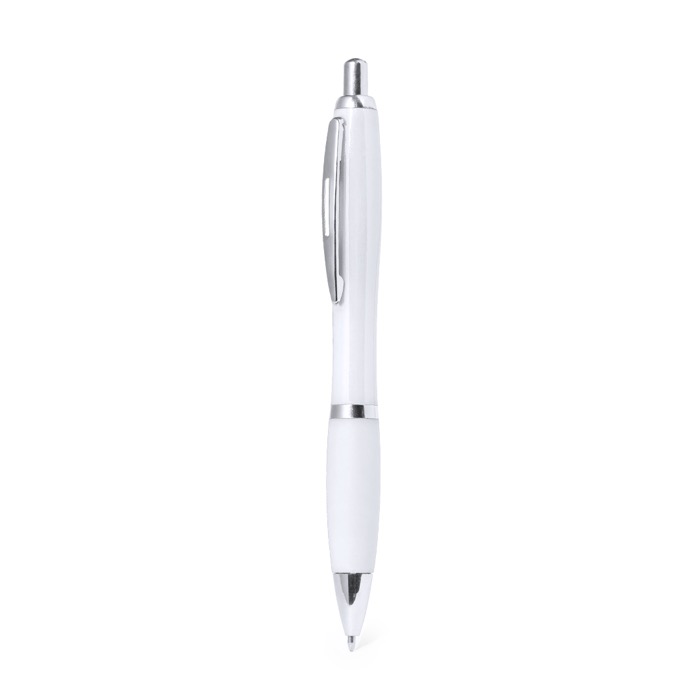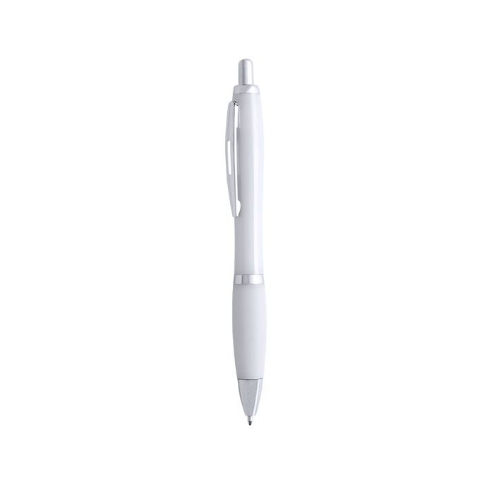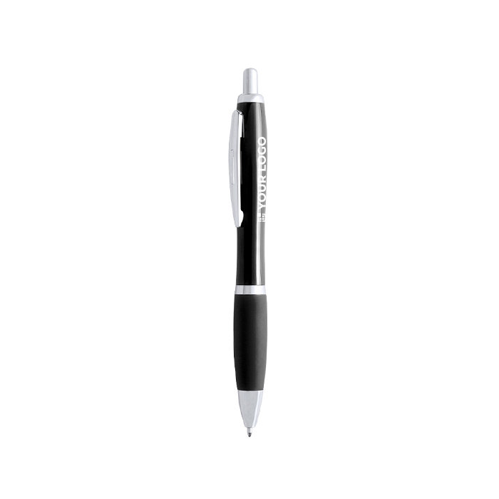 Bolígrafo de plástico con mecanismo pulsador, pensado para un uso diario en oficina y eventos. Incorpora clip, pulsador y punta en acabado plateado, lo que facilita llevarlo en libreta, bolsillo o acreditación sin complicaciones. La escritura en tinta negra ofrece un trazo estándar y limpio para notas, firmas y formularios. Pieza resistente y ligera, adecuada para entregas masivas y campañas con marcaje corporativo. Opción práctica para recepciones, ferias, formaciones internas o acciones de captación.