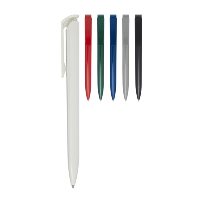 - Bolígrafo con cuerpo de plástico reciclado y punta de acero inoxidable