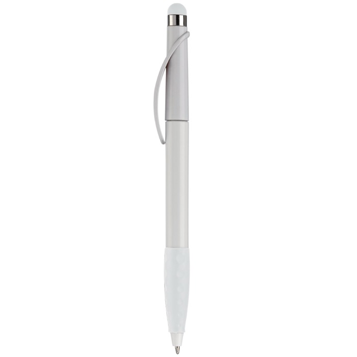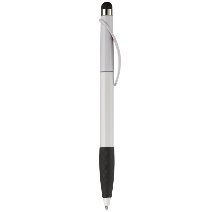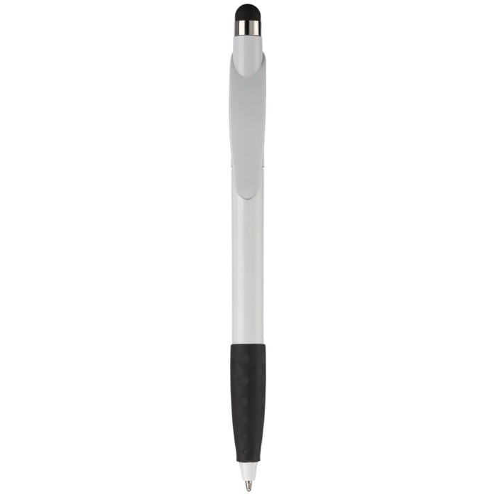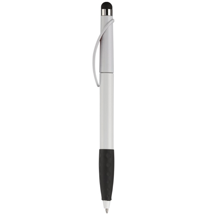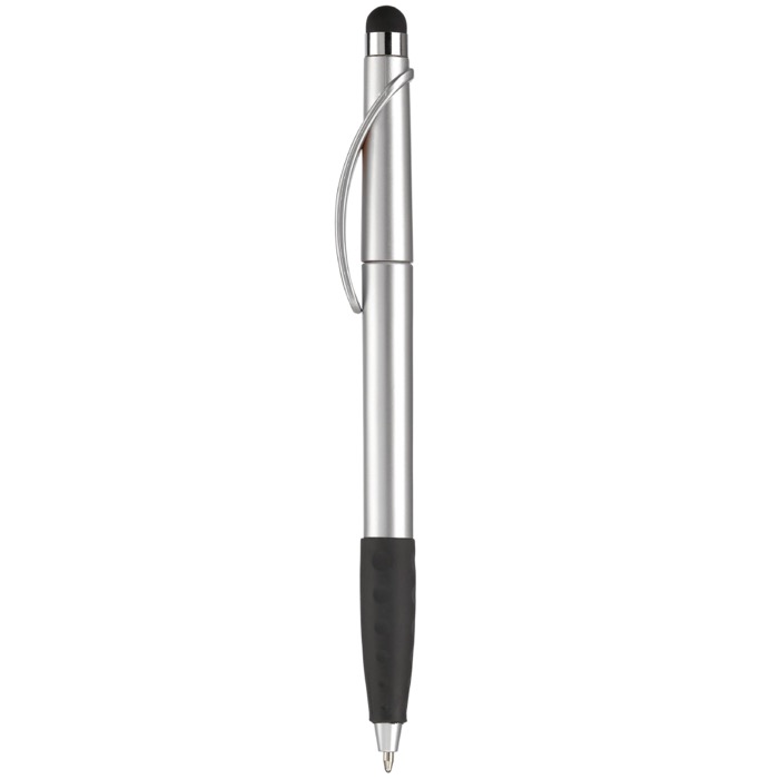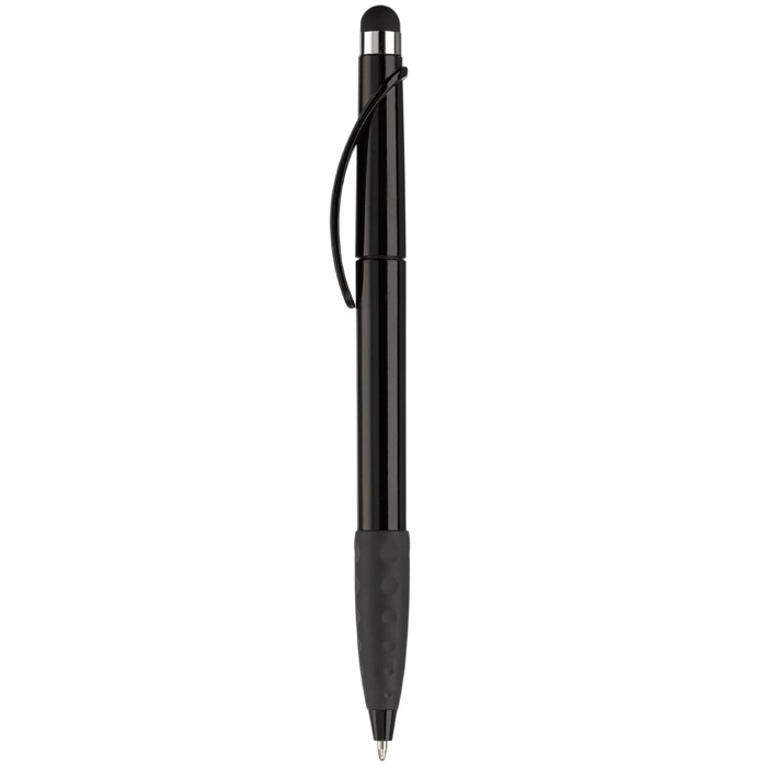 Bolígrafo fabricado con un diseño elegante que incluye un clip arqueado y un grip de goma para un agarre cómodo. Incorpora un puntero para pantalla táctil, lo que lo hace versátil para su uso en dispositivos electrónicos. Su mecanismo giratorio facilita la apertura y cierre, asegurando que la tinta azul esté siempre lista para escribir. Ideal para empresas que buscan un artículo práctico y funcional para sus empleados o como obsequio corporativo en eventos y ferias. Perfecto para personalizar con el logo de la empresa y reforzar la presencia de marca.