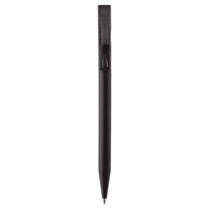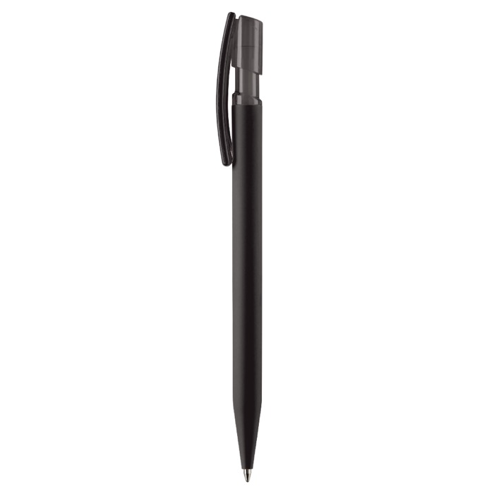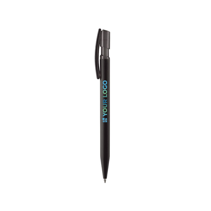 - Bolígrafo con cuerpo suave al tacto y clip transparente
