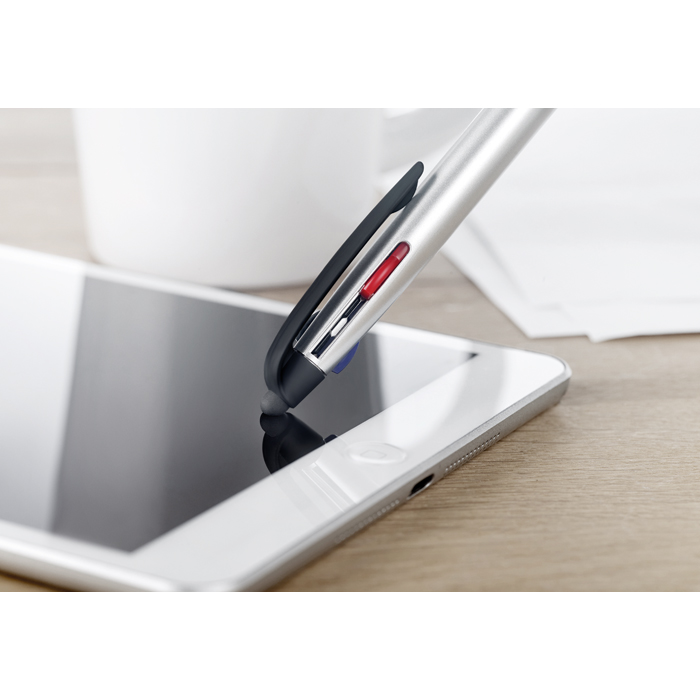 - Bolígrafo en ABS con 3 tintas y puntero táctil