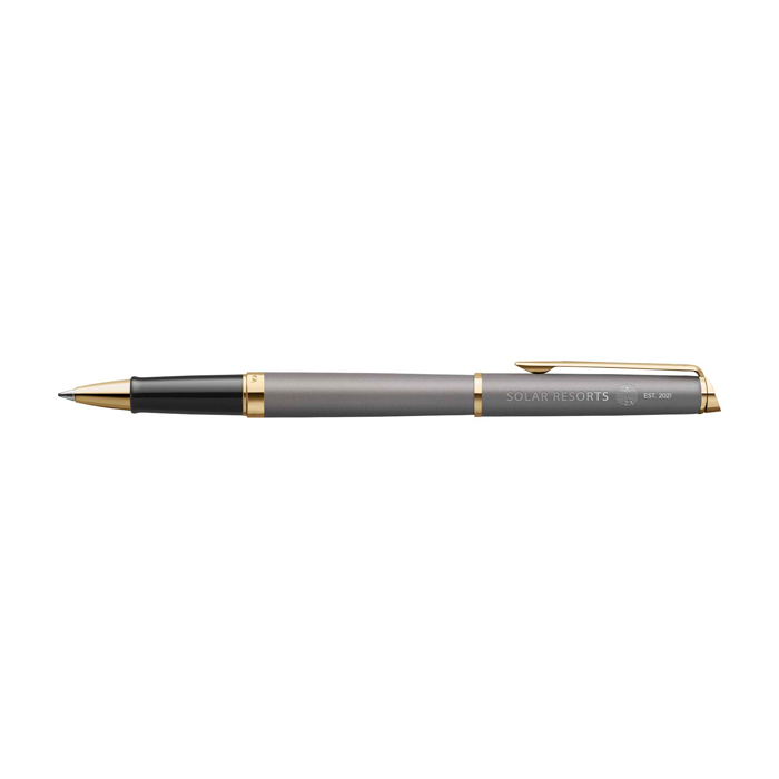 Bolígrafo de metal con acabado lacado metalizado, pensado para una escritura diaria consistente y una presencia discreta en entornos corporativos. El cuerpo y el capuchón incorporan detalles dorados claros y un clip doble ramificado con el sello Waterman, con un diseño equilibrado que encaja en reuniones, recepción o firma de documentos. La tinta negra de secado rápido ayuda a mantener el trazo limpio y fluido. Fabricado en Francia, incluye garantía internacional de dos años y se entrega en caja de regalo Waterman. Recomendado para acciones de RRHH y obsequio de empresa con logo.