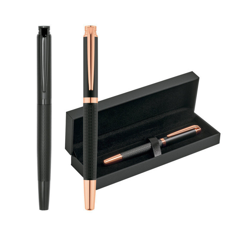 Bolígrafo roller corporativo elegante con estuche y tinta negra Grace