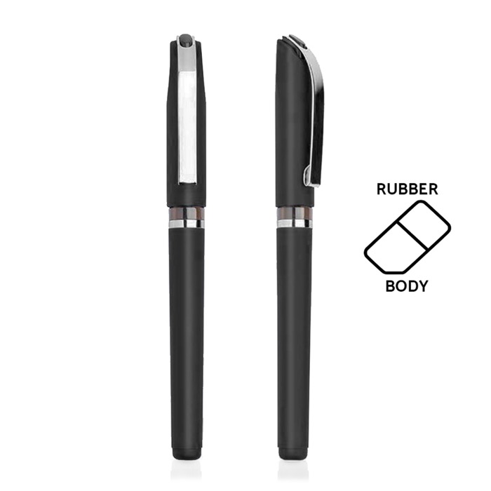 Ofrece un roller ergonómico de plástico con acabado de caucho que garantiza una experiencia de escritura cómoda y un agarre seguro. El tacto de goma en el plástico proporciona una ergonomía distinta, agradable de usar. Su diseño versátil y la fluidez de su tinta negra lo hacen adecuado para cualquier entorno profesional, desde la oficina hasta eventos. Además, cuenta con un sistema de cobertura que protege la punta. Al personalizar este bolígrafo con tu logo, proporcionas una herramienta práctica que tus clientes y empleados usarán a diario, manteniendo tu marca visible de forma constante.