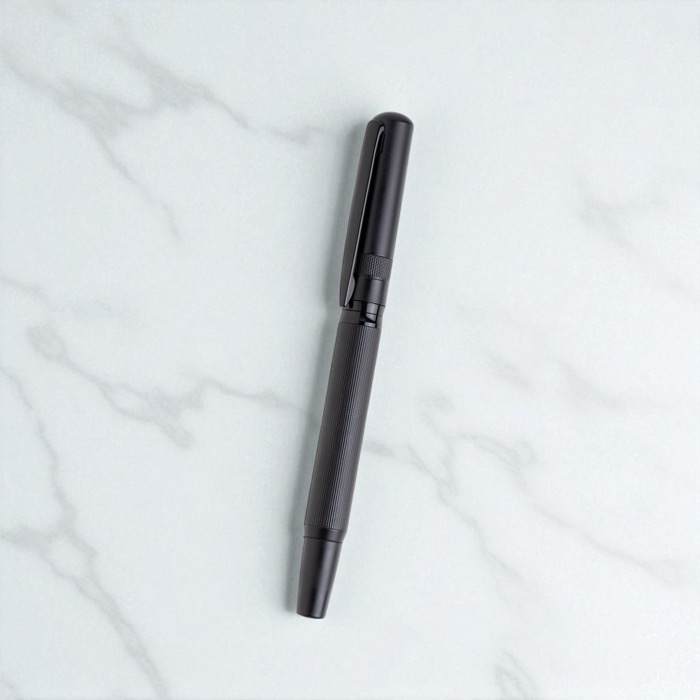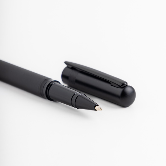 Roller metálico con tapa grabada y clip estrecho elegante tinta negra