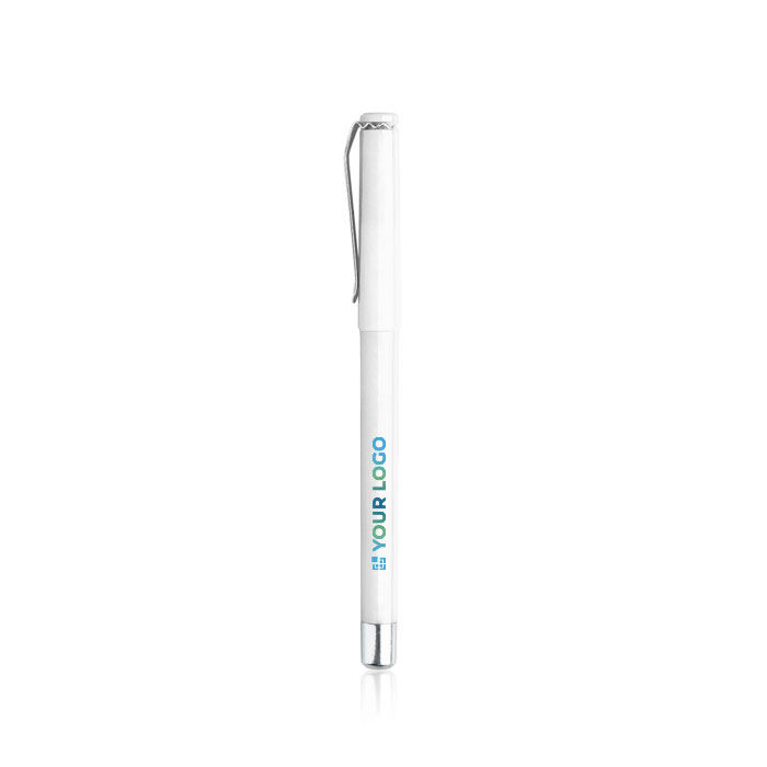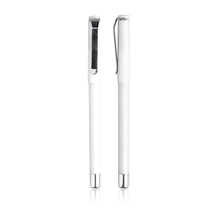 Roller de plástico con tapón de clip metálico y tinta azul de gel