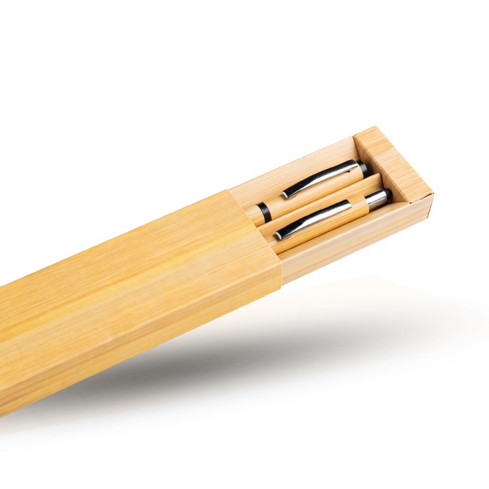 Set ecológico de bolígrafo y lápiz para regalar tinta azul Bambú