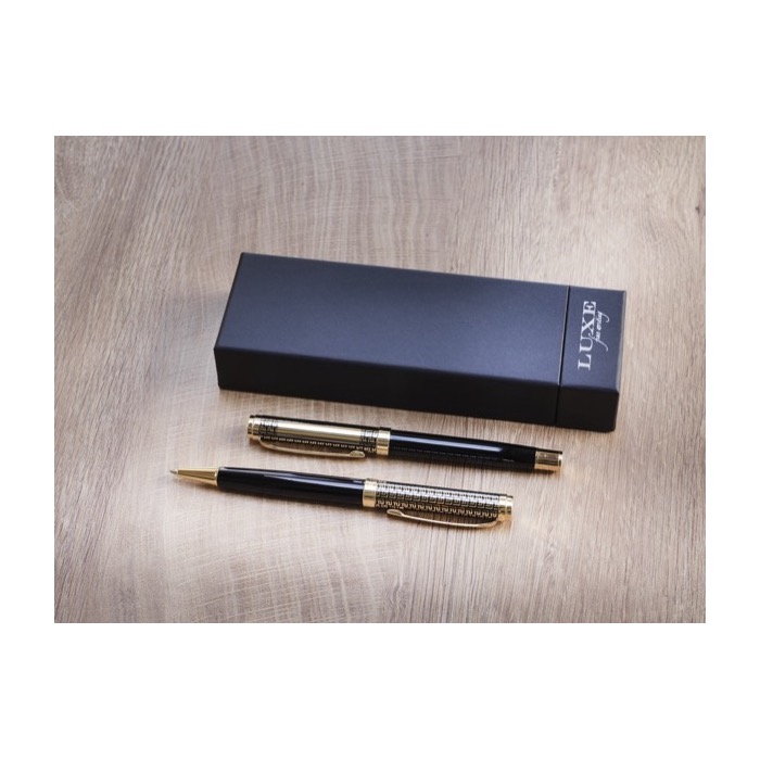 - Bolígrafo y rollerball con tinta azul y logotipo LUXE
