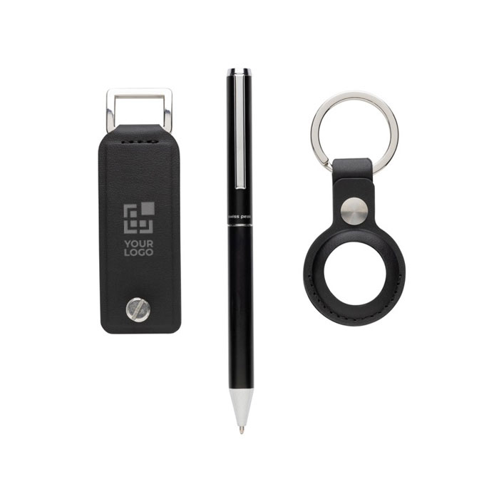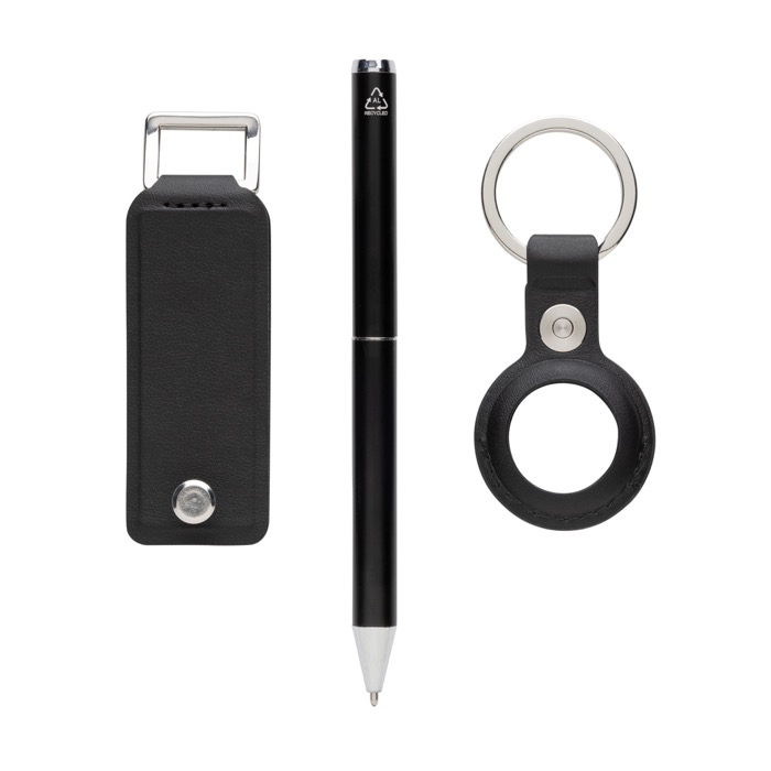 Llavero de metal, cartera de PU y bolígrafo tinta azul Executive