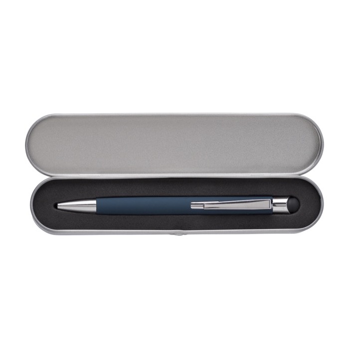 Bolígrafo de aluminio táctil en estuche de metal tinta azul