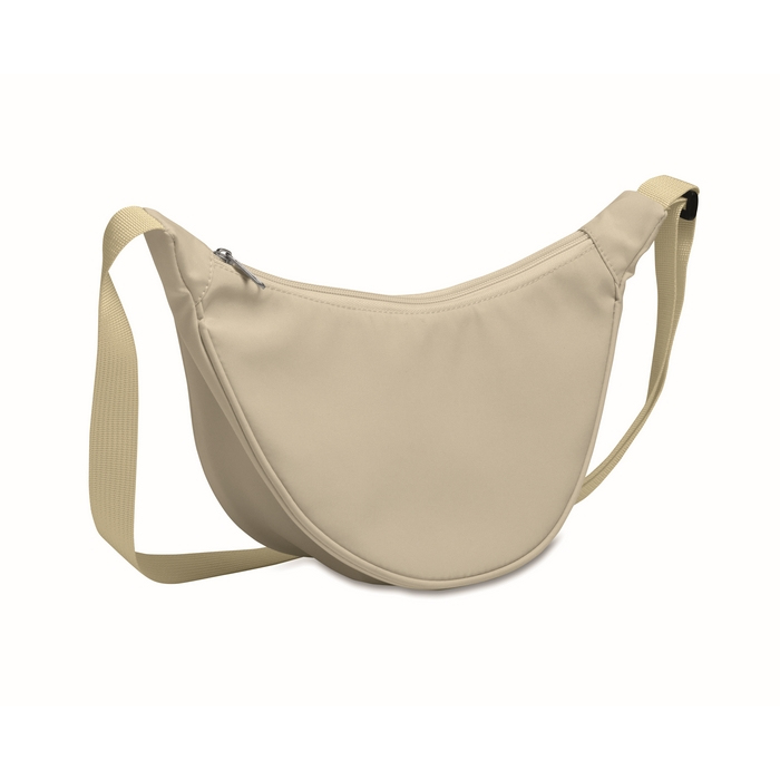 Al ofrecer una bolsa bandolera cruzada de RPET, tú brindas un accesorio elegante y funcional, fabricado con materiales sostenibles. Esta bolsa, en forma de medialuna, está hecha de Oxford 400D con un forro de RPET 210D, lo que garantiza durabilidad y resistencia. Su compartimento principal con cremallera y dos bolsillos interiores permiten una organización efectiva para el día a día. Tu marca, visible en este artículo de calidad, se asocia con la atención al detalle y el compromiso ambiental. Este obsequio demuestra tu aprecio por la practicidad y la estética de tus clientes o empleados, fortaleciendo su conexión con tu empresa y proyectando una imagen corporativa sólida y responsable.