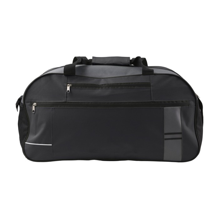 Lleva tu marca a cada entrenamiento con nuestra bolsa deportiva de poliéster con compartimentos y tira reflectante