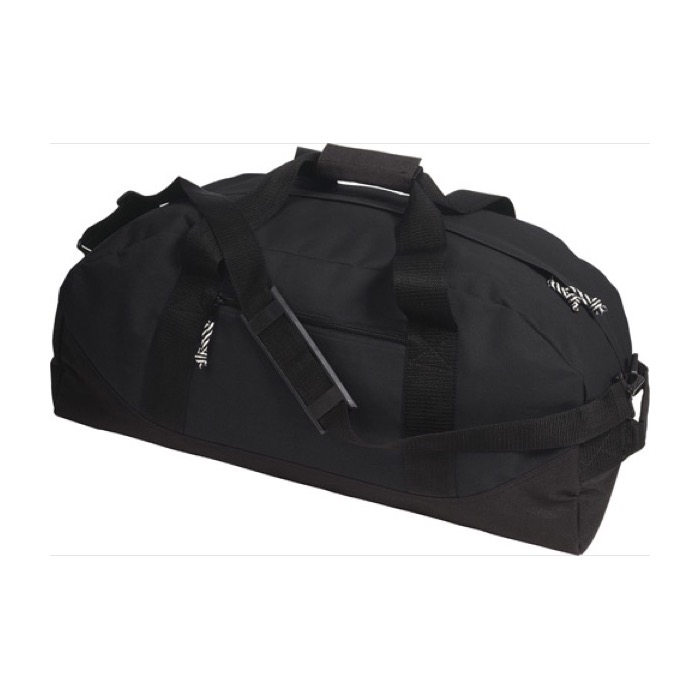 Bolsa deportiva de poliéster (600 D) diseñada para ofrecer durabilidad y resistencia. Cuenta con un amplio compartimento principal que facilita el almacenamiento de ropa y accesorios deportivos, mientras que el bolsillo frontal con cierre de cremallera permite un acceso rápido a objetos pequeños. Las asas son cómodas para llevar en la mano, y la bandolera es extraíble y ajustable, proporcionando flexibilidad en su transporte. Disponible en varios colores, se adapta fácilmente a los tonos de los logotipos corporativos, lo que la convierte en una opción ideal para personalización. Sin embalaje individual, es perfecta para eventos corporativos o como parte de un kit de bienvenida para empleados.