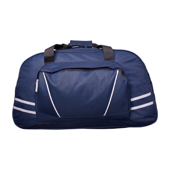 Bolsa deportiva o de viaje fabricada en resistente poliéster de 600 D. Cuenta con un amplio compartimento principal ideal para guardar ropa o equipo, y un práctico bolsillo frontal con cierre de cremallera para objetos más pequeños. Incluye un asa para llevarla cómodamente en la mano y una correa extraíble y ajustable para colgarla al hombro, adaptándose a diferentes necesidades de transporte. Perfecta para empresas que buscan un regalo corporativo útil y versátil, esta bolsa refuerza la imagen de comodidad y funcionalidad en viajes o actividades. Además, el servicio Express asegura una entrega rápida y eficiente.