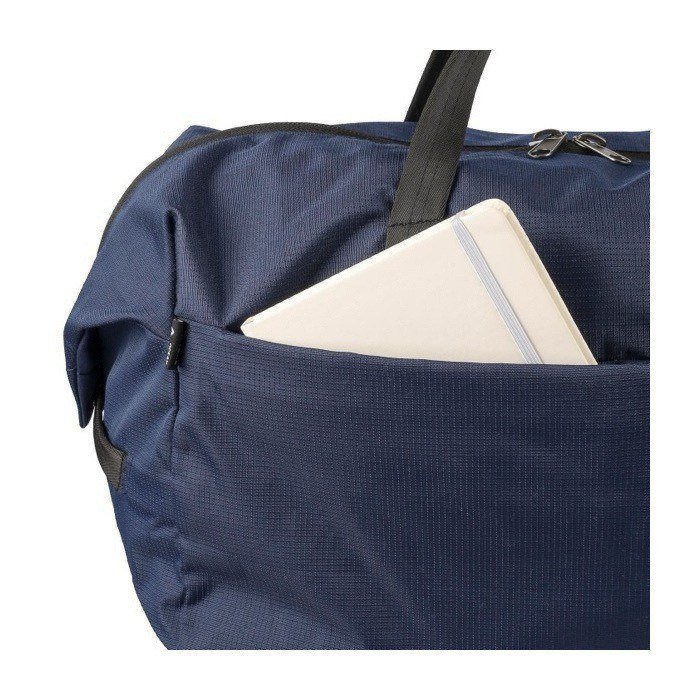 Bolsa de deporte o viaje de poliéster 300D con acabado texturizado, pensada para un uso intensivo en desplazamientos y actividades diarias. Ofrece 33700ml de capacidad y un compartimento principal amplio con cremallera, además de un bolsillo delantero y otro interior, ambos con cierre, para ordenar accesorios y documentación. Incluye dos asas largas y robustas y una cinta de hombro regulable para llevarla como más convenga. Se suministra en bolsa de plástico individual. Opción práctica para uniformidad de marca en eventos, equipos y acciones de fidelización.
