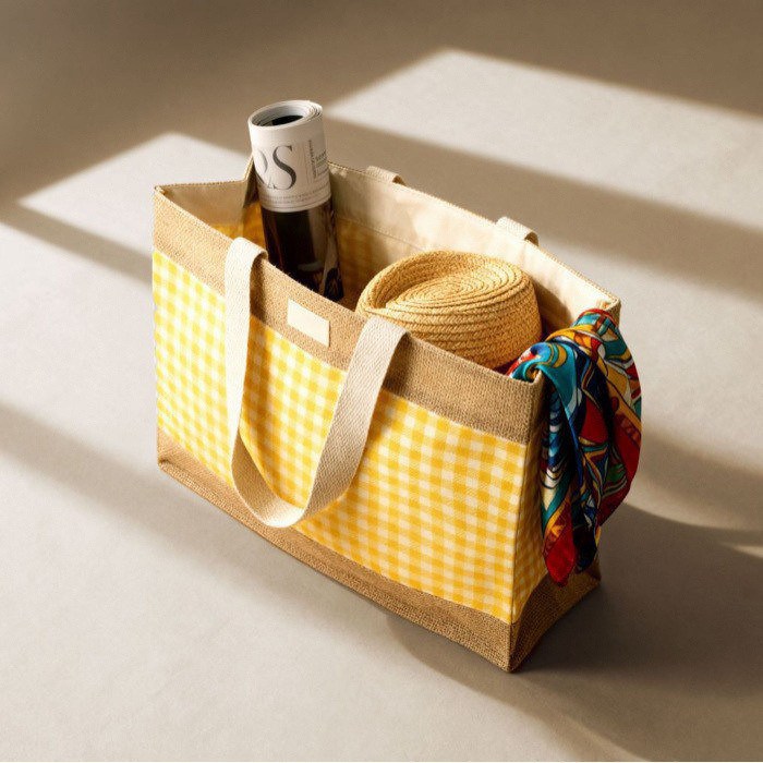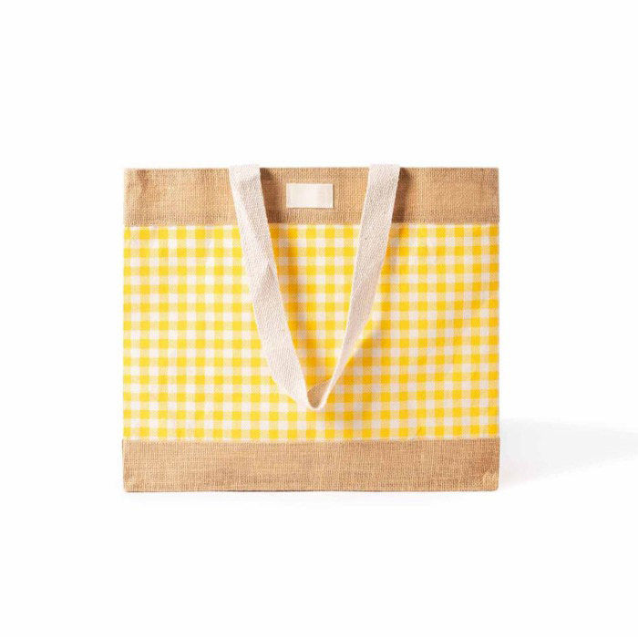 Bolsa en algodón reciclado y yute con diseño cuadriculado 220g/m²