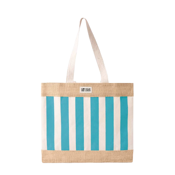 Bolsa de asas largas fabricada en algodón reciclado y yute de 220g/m², pensada para el día a día en entornos corporativos. La combinación de tejidos ofrece un tacto natural y un buen equilibrio entre ligereza y consistencia. Soporta hasta 5kg, por lo que resulta práctica para transportar documentación, catálogos o pequeños artículos de oficina. Las asas largas permiten llevarla al hombro con comodidad en ferias y desplazamientos. Opción útil para acciones de visibilidad de marca en eventos y entregas a equipo interno.