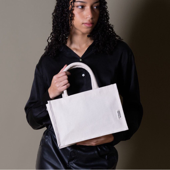 Bolsa pequeña de algodón reciclado para personalizar con asa corta