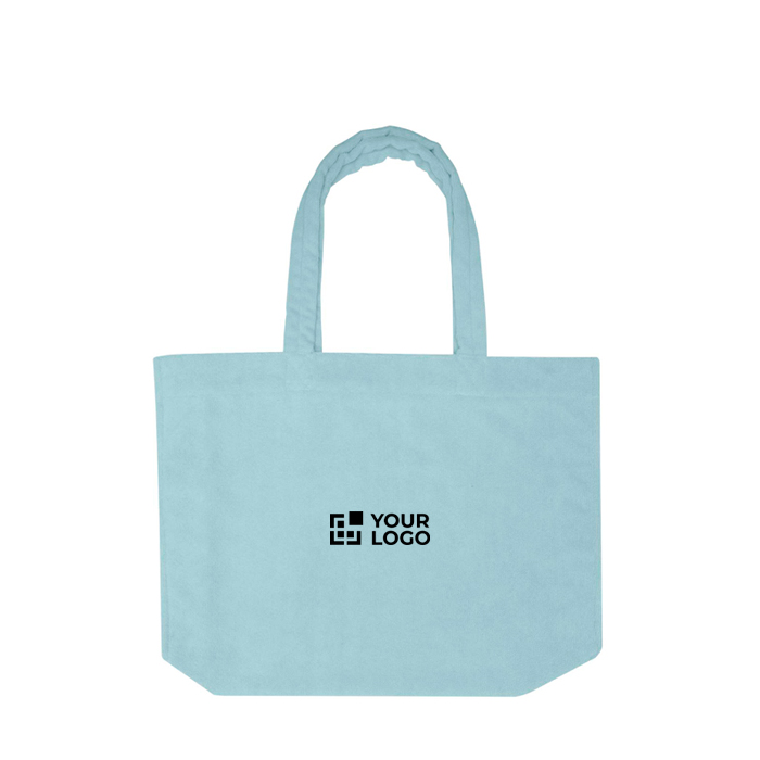 Una bolsa tote como esta te permite ofrecer un artículo ligero y original para tus clientes. Confeccionada con tejido de rizo certificado GRS, compuesto por 88 % poliéster reciclado y 12 % poliamida, refuerza el compromiso sostenible de tu marca. Su acabado soft y sensación acogedora la hacen ideal para días cálidos. Diseñada con un asa desplegable de 27 cm, facilita su transporte. Su compartimento grande y 13 litros de capacidad la hacen útil para paseos, recados o un día de playa. Tu logotipo se exhibirá en diversas situaciones cotidianas, asociando tu empresa con la practicidad y el respeto medioambiental.