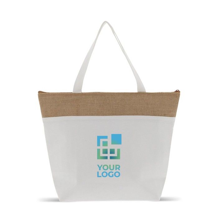 Bolsa nevera personalizada de algodón y detalle de yute con cremallera
