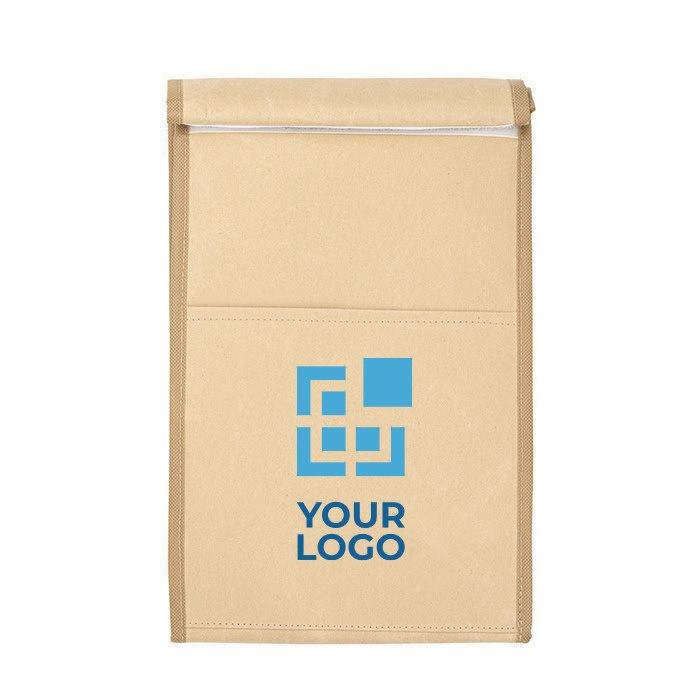 Bolsa térmica de papel con forro de non-woven (tejido no tejido) y aislamiento térmico de aluminio. Diseñada para mantener la temperatura de los contenidos, esta bolsa tiene una capacidad de hasta 4 litros. El cierre de velcro asegura un acceso rápido y fácil, mientras que el bolsillo frontal ofrece espacio adicional para pequeños artículos. Ideal para empresas que necesitan soluciones prácticas y eficientes para el transporte de alimentos o productos sensibles a la temperatura. Perfecta para eventos corporativos o como parte de una estrategia de marketing, gracias a su servicio Express que garantiza una entrega rápida.