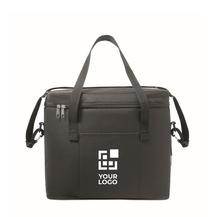 Bolsa nevera de 600D RPET con revestimiento de PU, pensada para transportar comidas y bebidas manteniendo la temperatura. Incorpora forro aislante de PEVA con espuma de PE de 6 mm para mejorar el aislamiento. Cuenta con 1 bolsillo frontal para accesorios y 1 bolsillo interior de malla para organizar mejor el contenido. Incluye 2 asas de mano y 1 bandolera ajustable para llevarla cómoda en ruta. Capacidad de 18 L, útil para la playa o packs de eventos.