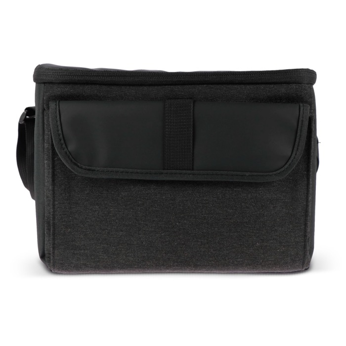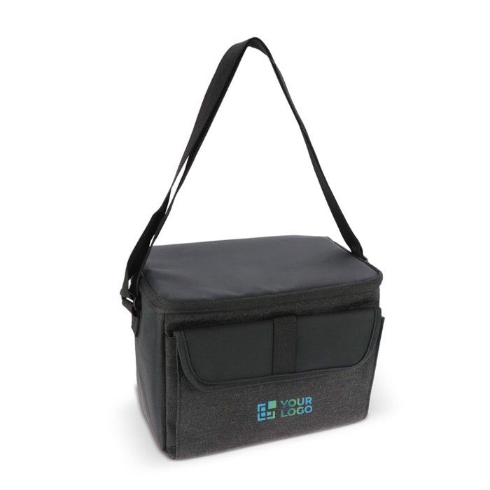 Bolsa nevera promocional negra de RPET con correa para el hombro 8L
