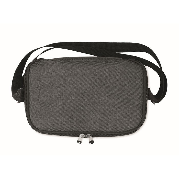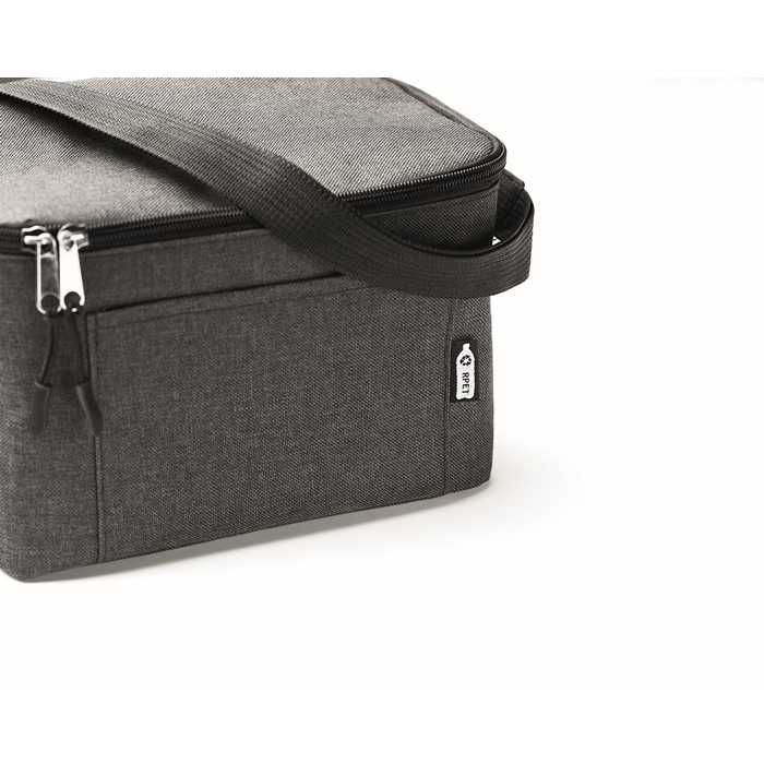 - Bolsa nevera con capacidad para 6 latas y RPET 600D jaspeado
