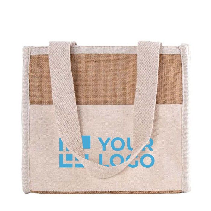 Una bolsa nevera de yute con bolsillo de algodón y cierre de velcro ofrece una alternativa natural y distintiva para mantener bebidas y alimentos frescos. Su forro interior de aluminio mejora la conservación térmica, asegurando que los productos se mantengan a la temperatura adecuada durante más tiempo. Su estética diferente la hace sobresalir en la playa, picnics o eventos informales. Al personalizarla, tu marca se asocia con la originalidad y la sostenibilidad, captando la atención y reforzando una imagen de empresa consciente. Este obsequio contribuirá a una mayor visibilidad y a la fidelización de tu público.