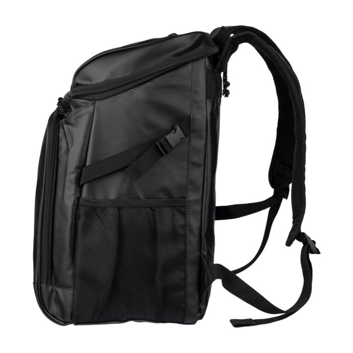 - Bolsillo de malla lateral con banda elástica, servicio exprés