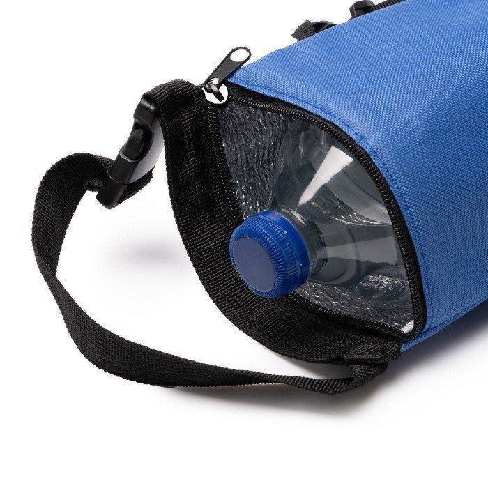 Nevera para botellas con exterior de plástico reciclado y aislamiento térmico en el interior, pensada para transportar bebidas frías con orden y comodidad. Incorpora cremallera superior para un acceso rápido y un cierre seguro durante el trayecto. La hebilla ajustable ayuda a adaptar la sujeción según el uso, y la cinta bandolera con mosquetones facilita el transporte al hombro o colgada. Opción práctica para acciones de marca en ferias, eventos y merchandising corporativo.