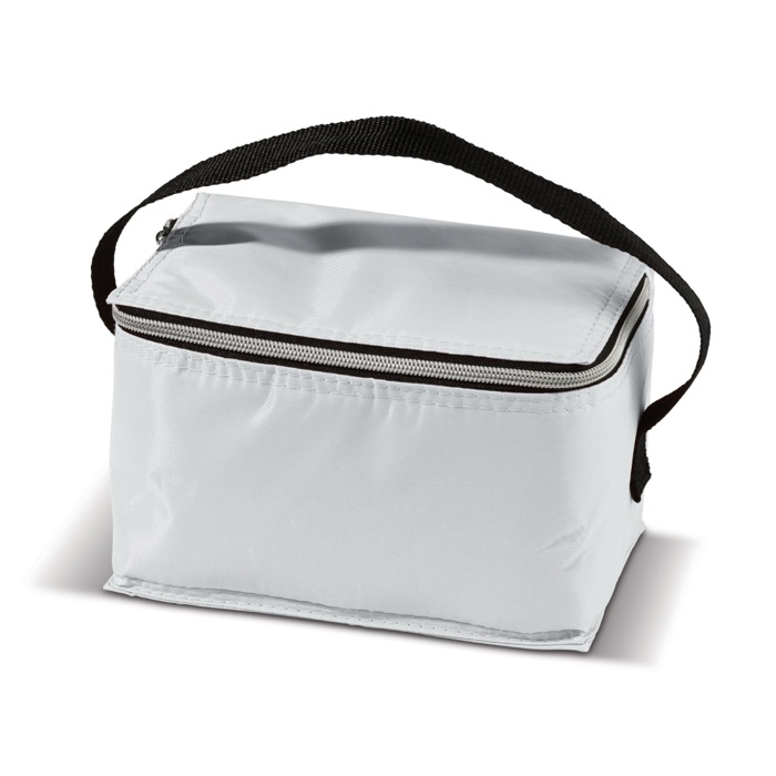 Nevera de poliéster de colores con pequeña asa negra para 6 latas