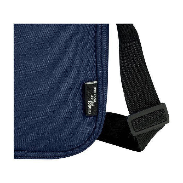 Con una bandolera de poliéster reciclado repelente al agua, tú comunicas el compromiso de tu marca con la sostenibilidad. Este accesorio, con certificación GRS, ofrece múltiples bolsillos para una organización eficiente. Incluye un compartimento con cremallera y un bolsillo interior para dispositivos, además de un bolsillo delantero para llaves y accesorios de valor. Un bolsillo trasero abierto facilita el acceso rápido. Las correas ajustables de alta calidad aseguran comodidad diaria. Sin PVC, este artículo refuerza una imagen corporativa responsable, conectando con un público que valora estos principios.