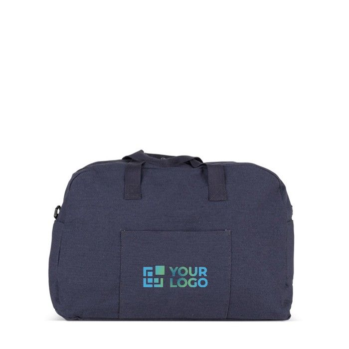 Cuando ofreces una bolsa de viaje de lona reciclada, proporcionas a tus clientes un accesorio funcional y con conciencia ambiental. Esta pieza, robusta y con un acabado de efecto lavado, te acompañará en tus escapadas de fin de semana o viajes cortos de negocios. La estructura y el efecto lavado del material dan a la bolsa un aspecto de gran resistencia. Su correa de algodón ajustable y base reforzada garantizan durabilidad y comodidad en cada desplazamiento. Tú podrás organizar tus pertenencias de manera eficiente, proyectando una imagen de compromiso y profesionalidad. Es un elemento práctico que refuerza tu marca en cada uso, mostrando tu preocupación por el detalle y la sostenibilidad.