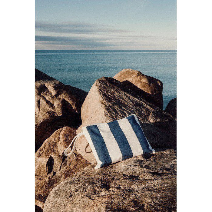 Bolsa organizadora de lona de 390g/m² con estampado de rayas bicolor. pensada para mantener accesorios y pertenencias bien ordenadas. Incorpora cierre con cremallera para un guardado seguro y un asa práctica que facilita el transporte en el día a día o durante desplazamientos. Fabricada con un 69% de algodón reciclado y un 29% de poliéster reciclado. cuenta con certificación GRS (Estándar Global de Reciclaje). que verifica la cadena de suministro de materiales reciclados. Útil como regalo corporativo en eventos. viajes de empresa o acciones de marca.