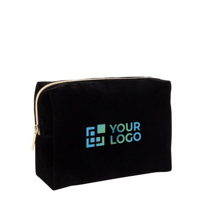 Ideal para todo tipo de viajes, nuestro neceser es un regalo perfecto tanto para empleados como para clientes. Se trata de un artículo sumamente práctico para mantener organizados los objetos personales, y destaca por su elegante diseño y su agradable tacto aterciopelado. La cremallera dorada añade un toque sofisticado, creando una armonía visual con el acabado del material. A pesar de su apariencia lujosa, este neceser se encuentra entre las opciones más accesibles del mercado. Es una excelente forma de asegurar que tu marca acompañe a tus clientes en cada uno de sus desplazamientos. Disponible con dos técnicas de marcaje, incluyendo la impresión con purpurina en tonos plata, dorado, rosa o azul.