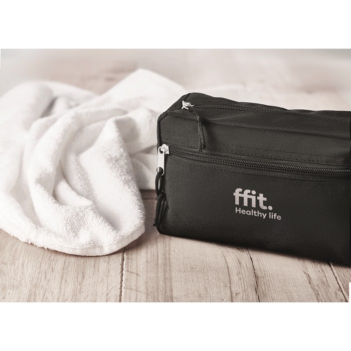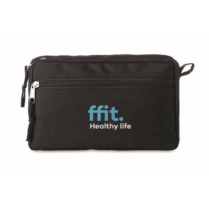 Neceser de doble cremallera fabricado en RPET 600D con refuerzo de PPE. Este neceser es resistente y duradero, ideal para el uso diario. El material RPET asegura un enfoque sostenible, contribuyendo a la reducción de residuos plásticos. Con un diseño práctico, las dos cremalleras permiten un acceso fácil y organizado a los artículos personales. El refuerzo de PPE (polipropileno expandido) proporciona una estructura sólida y protección adicional. Disponible con servicio Express, es perfecto para empresas que necesitan soluciones rápidas. Ideal para centros, spas y gimnasios como regalo de bienvenida para nuevos socios o clientes.